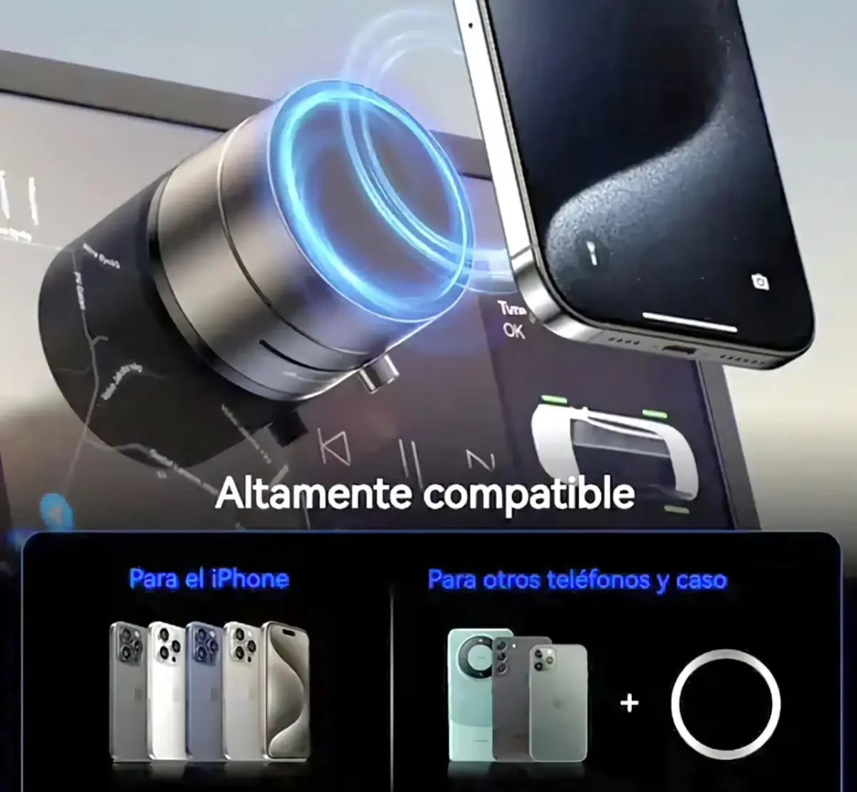 Potencia magnética y diseño discreto. Tu celular, siempre seguro y al alcance de la mano.
